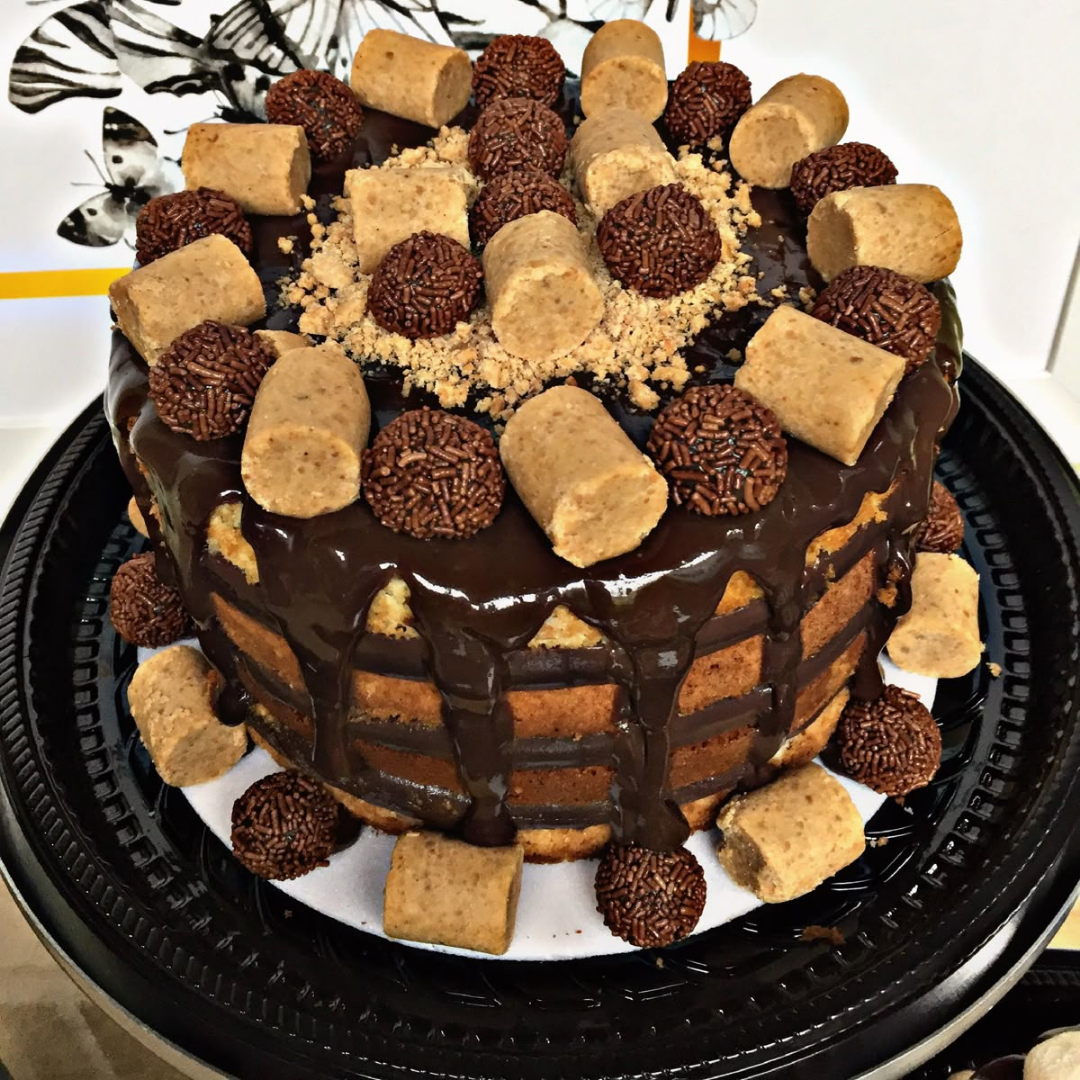 ✨ Bolo com Pipoca, Chocolate e Caramelo